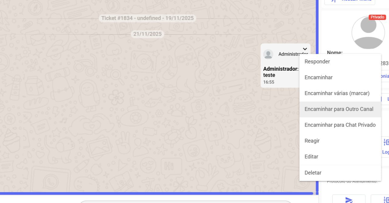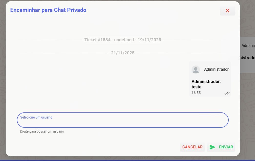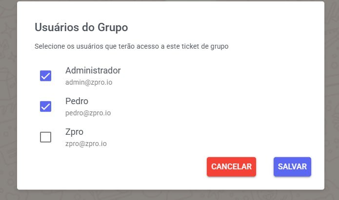 – compartilhar ticket / contato de grupo com outros usuários (atendimento)