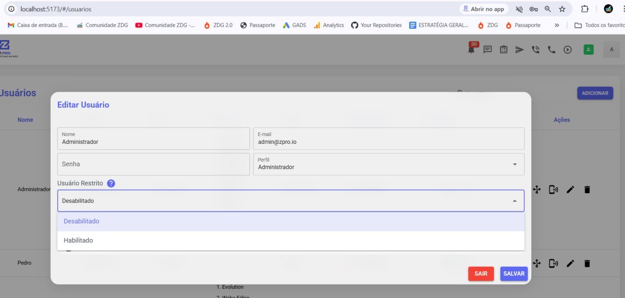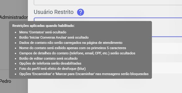– restrição para usuários (acesso a informações de contatos) – configuração do usuário